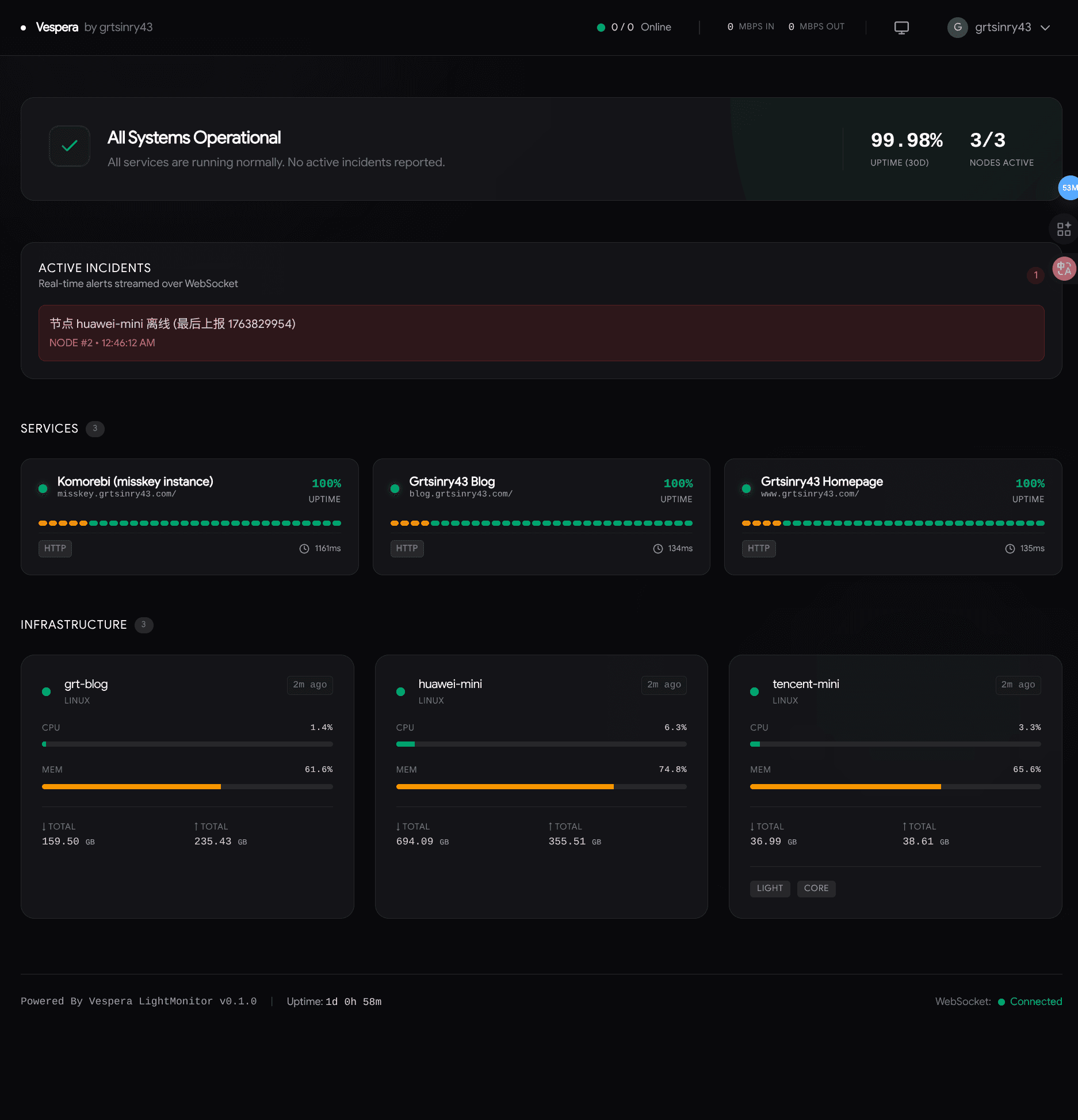 于是看着市面上眼花缭乱的服务器探针, Vespera LightMonitor 诞生了。